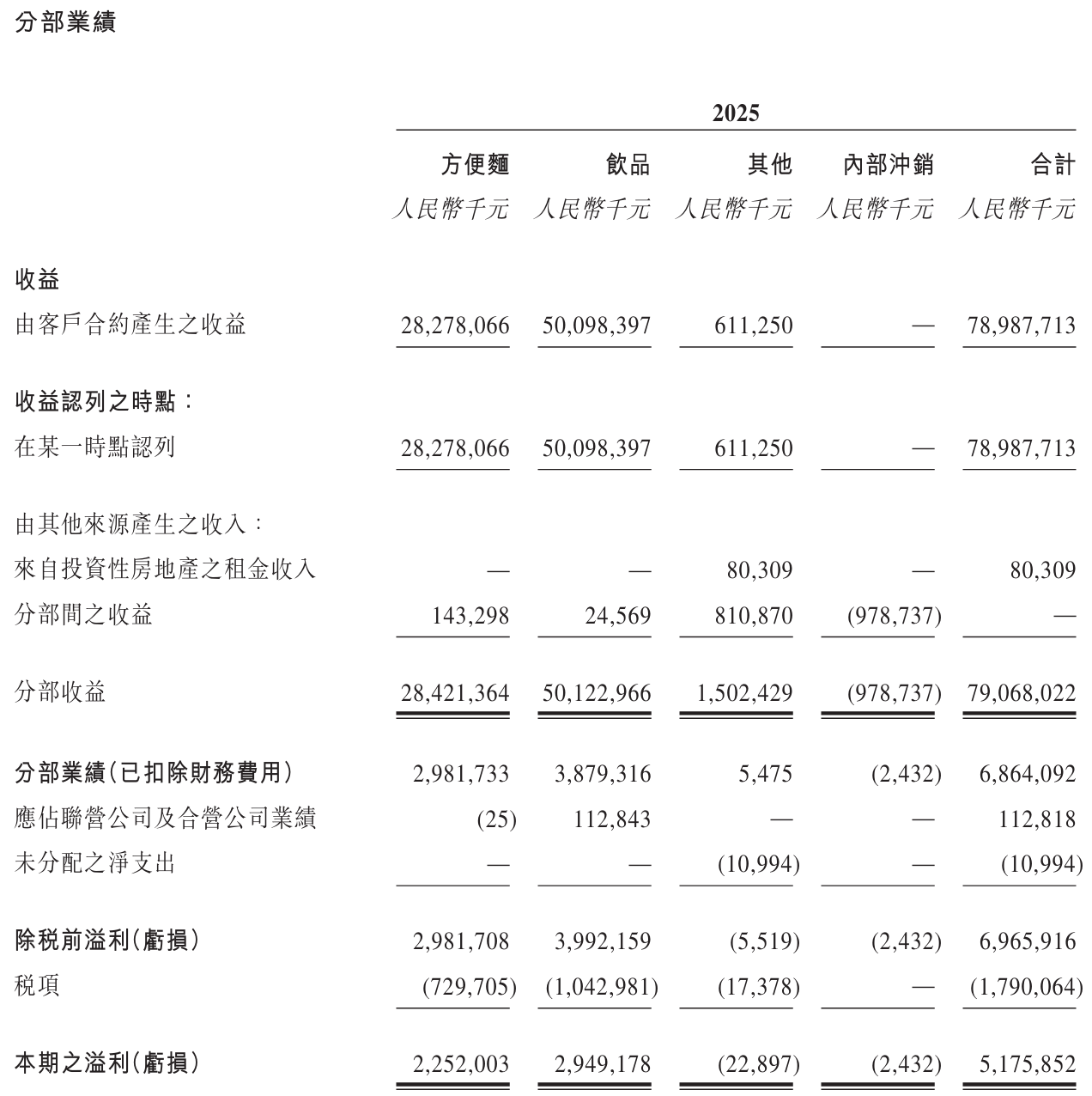 康师傅2025年财报业绩披露。图源:康师傅业绩公告
